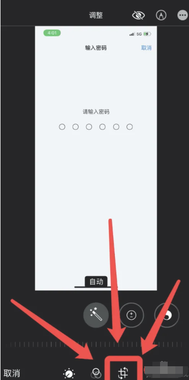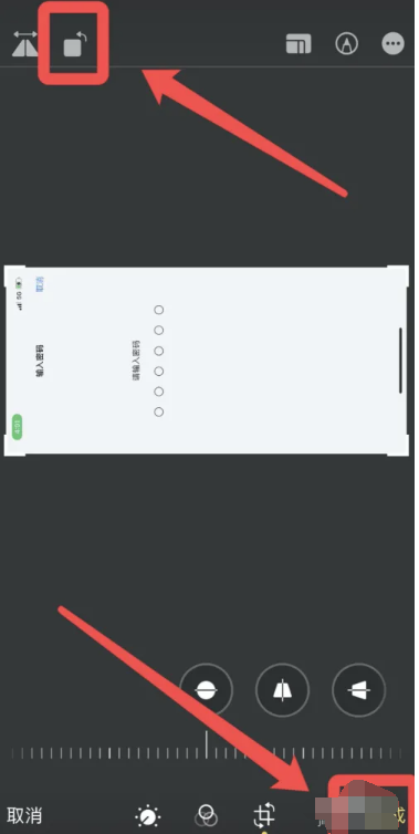 2.然后进入调整编辑页面,点击底部的【旋转】图标;
