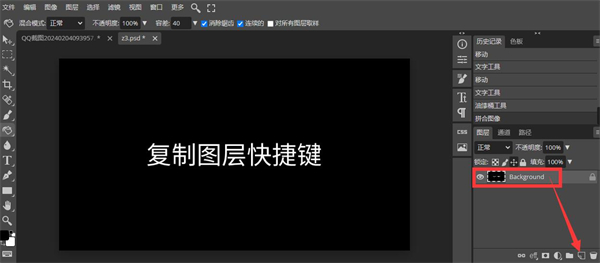 1.打开图像后,按住图层并向下移动【新建图层】图标。
