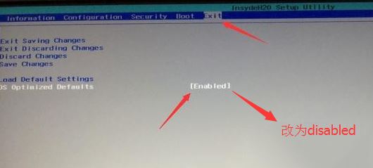 2、进入Exit,将OS Optimized Defaults设置为Disabled或Other OS,如图: