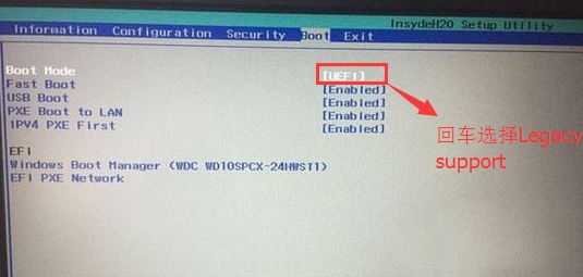 4、切换到Boot,将Boot Mode从UEFI改为Legacy Support,如图: