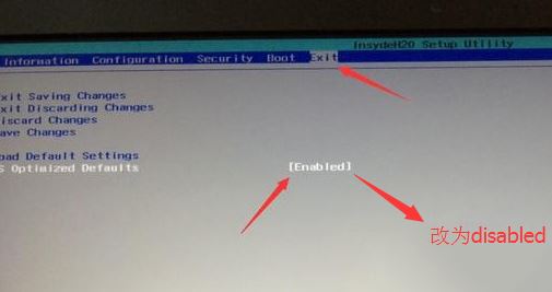 2、进入Exit,将OS Optimized Defaults设置为Disabled或Other OS,如图: