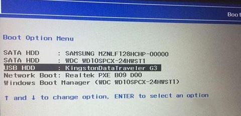 6、插入准备好的U盘启动盘,重启按F12或FN+F12弹出启动管理对话框,选择USB HDD识别U盘并启动进入PE!