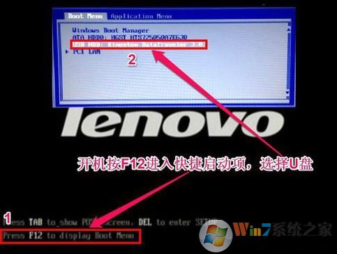 5、保存设置后,会自动重启并进入LOGO界面。按住F12,选择要启动的U盘,如图: