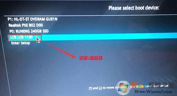 4、插入U盘启动盘,重启后按ESC选择识别到的U盘启动项,按回车,如图: