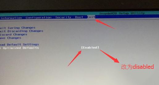 2. 转到“退出”并将“OS Optimized Defaults”设置为“Disabled”或“Other OS”;