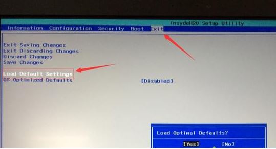 3. 选择“加载默认设置”并按Enter 加载设置。加载默认设置后,部分机型需要按F10保存并重启,然后按F2进入BIOS继续下面的设置;