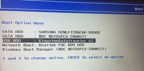 7、插入准备好的U盘启动盘,重启按F12或FN+F12弹出启动管理对话框,选择USB HDD识别U盘启动进入PE,回车;