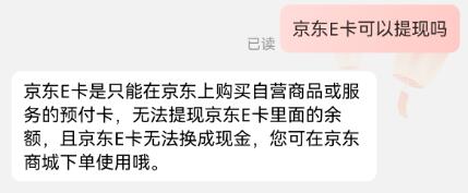 2. 礼品卡只能在京东使用,不能兑换余额。
