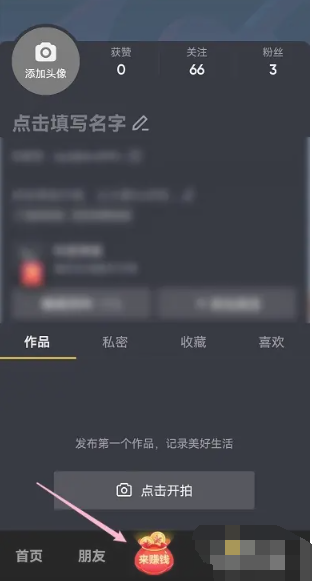 2、然后点击主页下方的【快来赚钱】按钮;