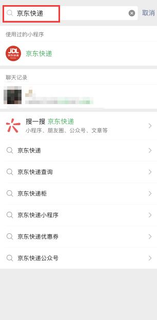 1.进入微信,点击搜索,输入【京东快递】,点击下方小程序。