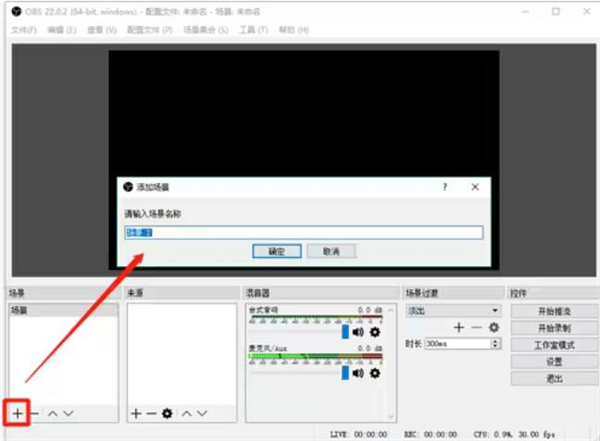 2、点击场景左下角【+】添加场景,输入场景名称。
