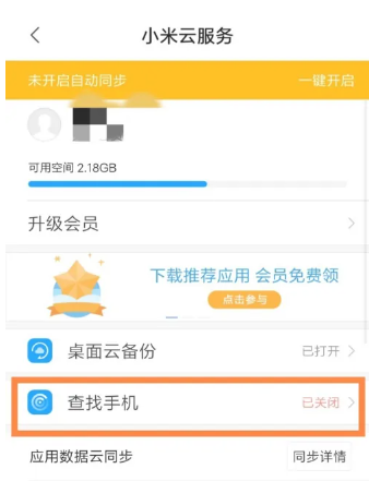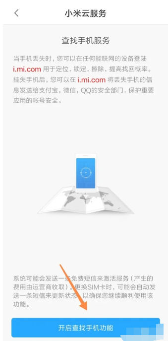 4.然后进入小米云服务功能页面,选择【查找手机】功能;