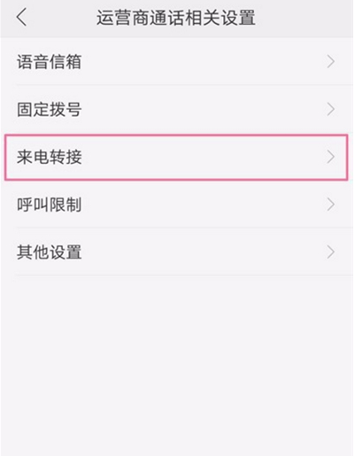3、然后点击下图运营商通话相关设置功能页面的【通话转接】功能;