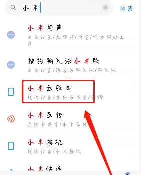 1、首先打开小米手机中的设置功能,在主页搜索框中输入【小米云服务】功能;