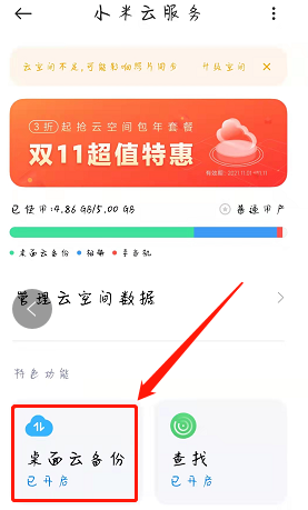 2、然后在小米云服务页面,点击【桌面云备份】服务;