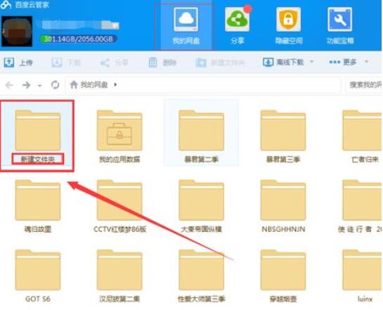 2、然后打开百度云盘,点击需要传输的文件夹。
