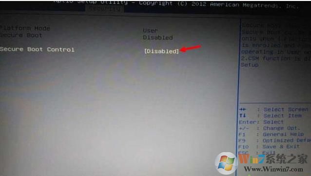 2、进入Secure Boot菜单,将Secure Boot Control设置为Disabled;