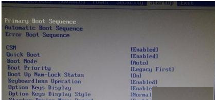 3、进入启动界面,将“CSM”设置为“enabled”(CSM:兼容性支持模块)