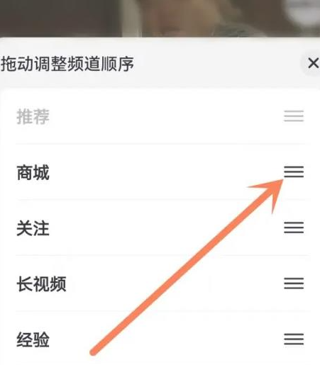 2.之后,底部会跳转到导航排序页面。按住横线拖动排序;