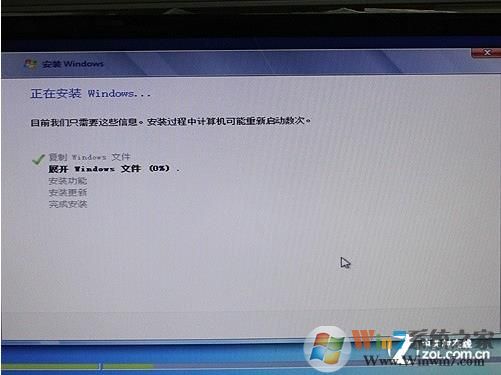 7、分区完成后,选择第一个主分区,开始下一步Win7系统的安装。