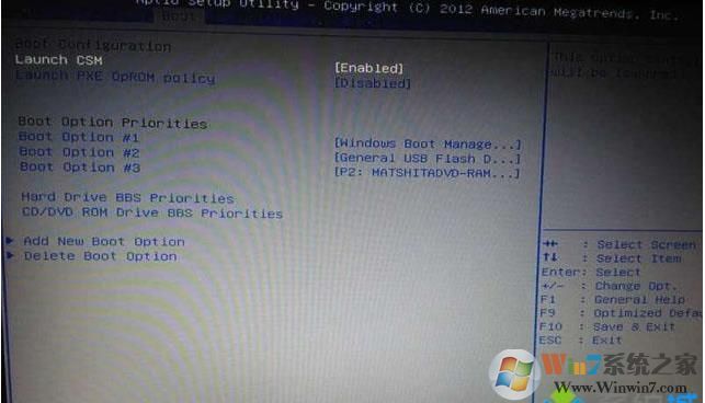 3、按ESC返回主界面,切换到Boot,将Launch CSM设置为Enabled;