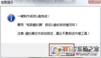 5、大白菜U盘启动盘创建完成后,大白菜安装版会弹出信息提示窗口,点击“是(Y)”进入电脑模拟器窗口。如下图