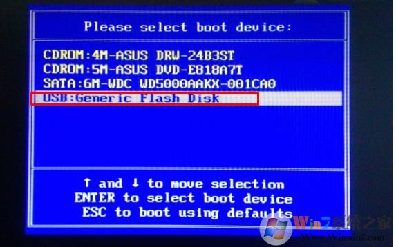 2、出现启动项选择界面,然后选择要启动的U盘。