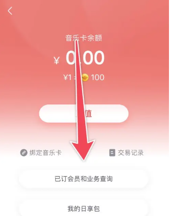 3、最后在音乐卡页面,点击下方的【订阅会员及业务查询】边框即可。