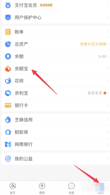 1、首先打开支付宝APP进入我的专区,找到【余额宝】服务并点击;