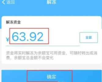 4.进入解冻页面,选择需要提现的金额,点击【确定】。