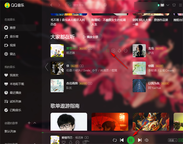 5、这样界面就会显示音乐播放已经开始,下面可以调节音量。