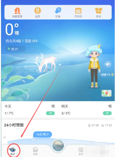 1、首先打开墨迹天气APP进入主页面,点击左下角【墨迹】进入专区;