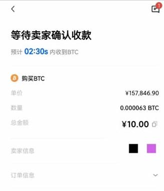 5. 点击“购买”后,用户可以选择付款方式,然后点击“下一步”。页面会确认两次并生成订单。根据卖家信息,点击“我已转账”,等待订单匹配完成。成功后,可以在账户余额中查看购买的比特币。