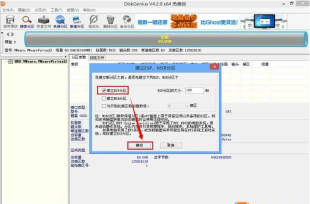 创建ESP分区作为启动存储,检查并确认;