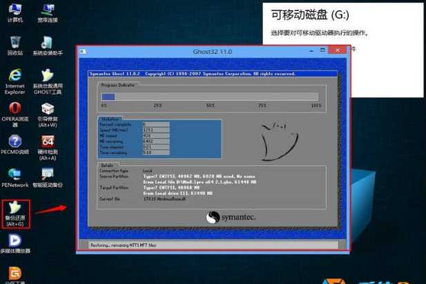 5、将Ghost Win8或Win10系统镜像GHO文件复制到U盘或本地磁盘,然后运行备份恢复工具,使用PE中的GHOST工具将GHO克隆到C盘。如下图:
