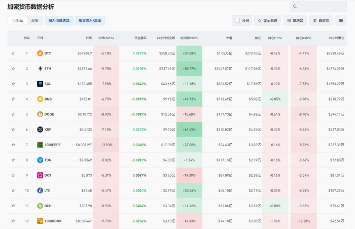 8. CoinglassCoinglass 以其全面的历史数据分析能力而闻名。平台提供包括价格走势、合约交易量、持仓量、资金费率、爆仓情况等多维度数据分析工具,帮助用户深入了解市场动态和风险状况。 Coinglass还支持用户自定义指标和策略,满足专业交易者的深度分析需求。 Coinglass是投资者想要进行精细化交易管理和风险控制不可或缺的辅助工具。