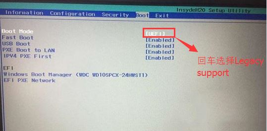 4.切换到Boot并将Boot Mode从UEFI更改为Legacy Support;