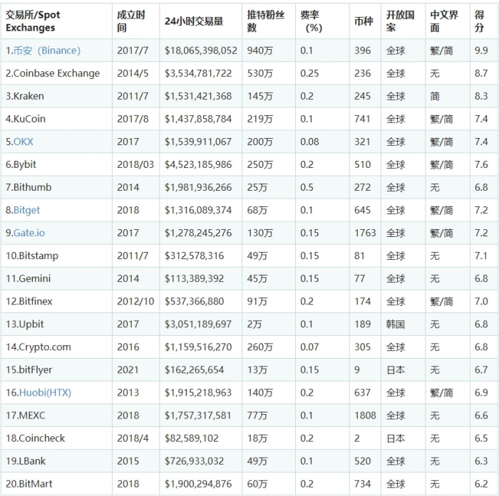 2024 年加密货币交易所将会发生什么?随着加密货币市场的快速发展,市场上涌现了许多交易所。以下是根据最新数据得出的2024年全球最具影响力的20家加密货币交易所(排名不分先后):