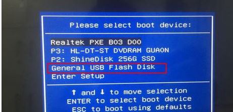 4.保存设置后自动重启并进入LOGO画面。按住重启键并按F12/F7/ESC快捷键,在启动菜单中选择USB启动,如下图;