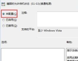 2、双击,“睡眠时允许待机(S1-S3)(接通电源)”设置为“未配置”。