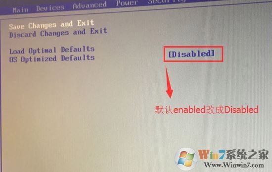2. 进入Exit并将OS Optimized Defaults设置为Disabled;