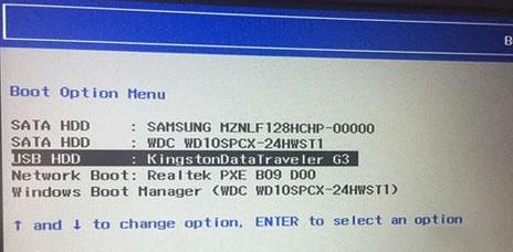 4、插入准备好的U盘启动盘,重启按F12或FN+F12弹出启动管理对话框,选择USB HDD识别U盘启动进入PE,回车;