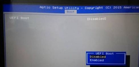 3. 选择“UEFI Boot”并按Enter 将其设置为“Disabled”。如果有CSM,则将其设置为Enabled,然后按F10保存设置;