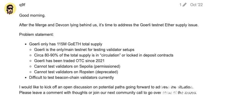 另外,根据以太坊魔术师论坛数据显示,Goerli上GETH总供应量仅有1.15亿枚,其中80%-90%在流通或锁定在充值合约中;由于GETH明显缺货,事实上从2021年开始就一直供不应求,一直都有场外交易,但现在LayerZero推出了“测试网跨链桥”,让开发者更方便轻松购买他们需要的测试代币。