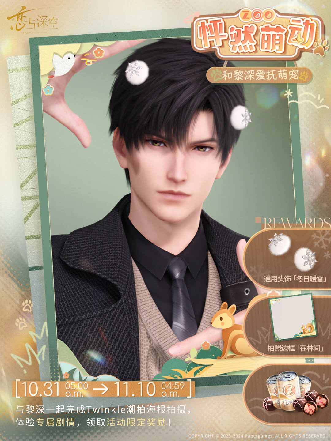与李深一起,根据影楼员工OTTO-PHO的提示完成海报拍摄。达到指定星级即可获得万能头饰“冬日暖雪”、相框“森林里”、“黑电能量·重”和“快乐巧克力”奖励!