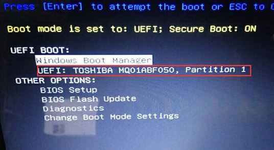 5。插入USB驱动器启动磁盘,在重新启动过程中连续按F12,打开快速启动菜单,然后选择已识别的USB驱动器以从USB驱动器启动,如图所示: