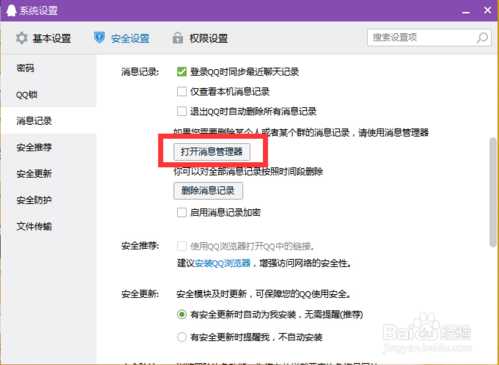 5、在打开的消息管理器中,点击页面右上角的倒三角符号,在下拉菜单中选择导入消息记录选项