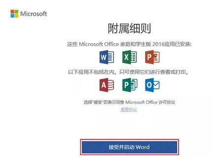 5、稍等片刻后,出现下图页面,点击【接受并启动Word】如图。