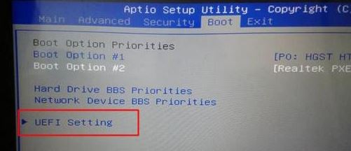 2。转到引导接口,然后选择输入的UEFI设置;