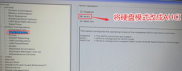 5。注意:切换到系统配置项目。如果严格的磁盘模式是突袭的,请将SATA操作硬盘模式更改为AHCI模式。否则,安装Win7将显示0x000007b蓝屏。更改后,选择退出并保存BIOS,如下图所示;